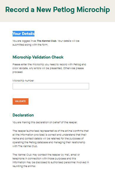 Once inside your account, you will be able to transfer a pet's keepership into your organisation's name and address, or from your organisation to a member of the public. In order to do this, you will need the microchip number of the pet in question.
